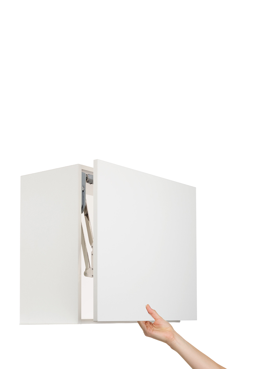 Quincaillerie pivotante verticale avec le corps. Hauteur 345-420mm. Poids de la façade 7,4 - 14kg.