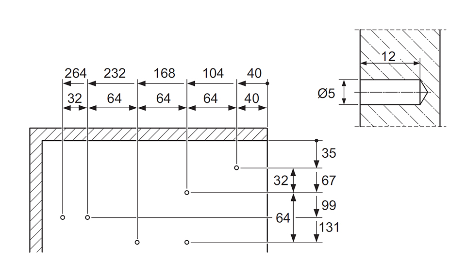 Quincaillerie pivotante verticale avec le corps. Hauteur 380-500mm. Poids de la façade 6,3 - 11,8kg.