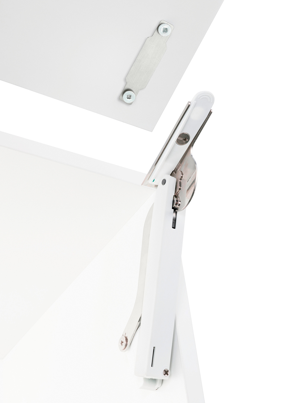 Ensemble complet pour abattant sans poignée a ouverture Push To Open (PTO) sur armoires supérieures sans utilisation de charnieres avec des dimensions minimalistes de quincaillerie. Hauteur du panneau 200-650mm, largeur jusqu’a 1800mm. Limiteur d'angle d'ouverture intégré de 107° a 90°.