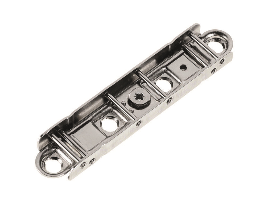 Quincaillerie pivotante en biais au-dessus du corps. Nécessite d’etre complétée par des caches et une barre de synchronisation.