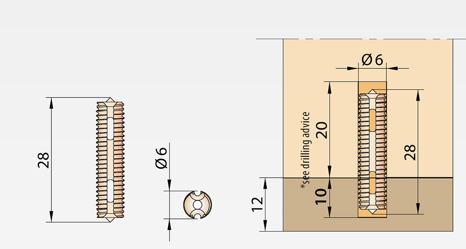 Les rainures longitudinales et les deux trous assurent une fixation solide dans le matériau.