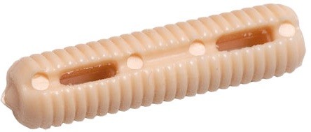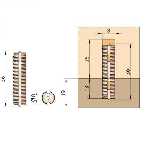 Des rainures longitudinales et deux trous assurent une fixation solide dans le matériau.