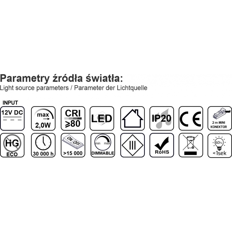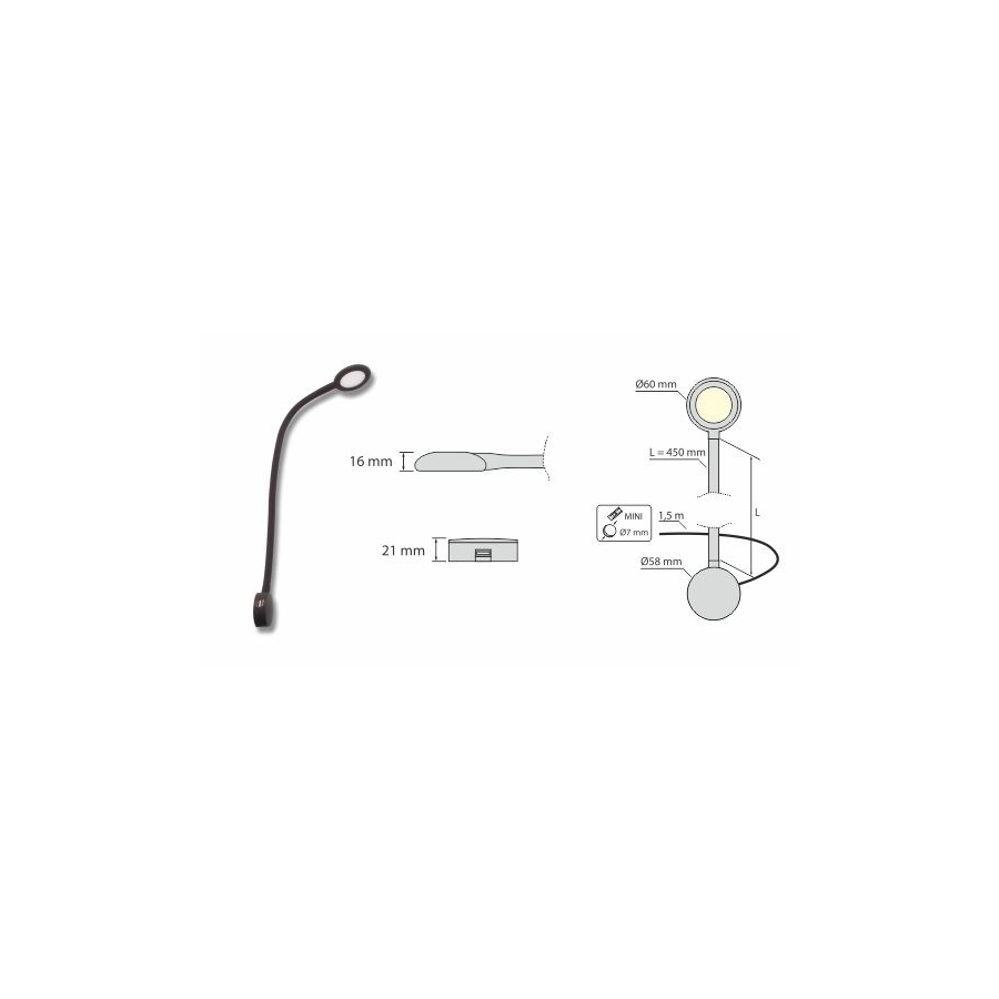 La lampe de lit MODUS TOUCH avec deux ports USB intégrés se caractérise par un design moderne et simple. C’est un changement intéressant par rapport aux lampes de chevet autoportantes. Elle prend peu de place et fonctionne également comme chargeur usb. Elle possede un bras flexible qui permet a la lampe de fonctionner sous différents angles d’inclinaison. Le Modus Touch émet une lumiere blanche chaude agréable, qui favorise la relaxation et le repos. Pratique pour la lecture au lit. L’allumage du luminaire MODUS TOUCH est simple – il suffit d’appuyer sur un bouton. Attention : le luminaire dispose également d’une fonction de gradation et d’amplification de la lumiere ! Ports USB 5V DC (2A et 1A). Nous recommandons d’utiliser une alimentation électrique d’au moins 18W par luminaire pour l’utilisation des ports USB. Couleur noire. Source d’alimentation - 12V DC. Puissance - 2W. Blanc chaud (3000K). Protection d’entrée - IP20. Consommation d’énergie en kWh/1000h - 2 kWh/1000h. Flux lumineux - 290lm. Durée de vie moyenne - 30 000 h. Nombre de cycles allumage/extinction - min. 15 000. Éclairage a 60 % du flux lumineux complet - moins de 1 sec. Longueur du câble - câble de 2 m avec connecteur Mini. Source lumineuse incluse - Oui.