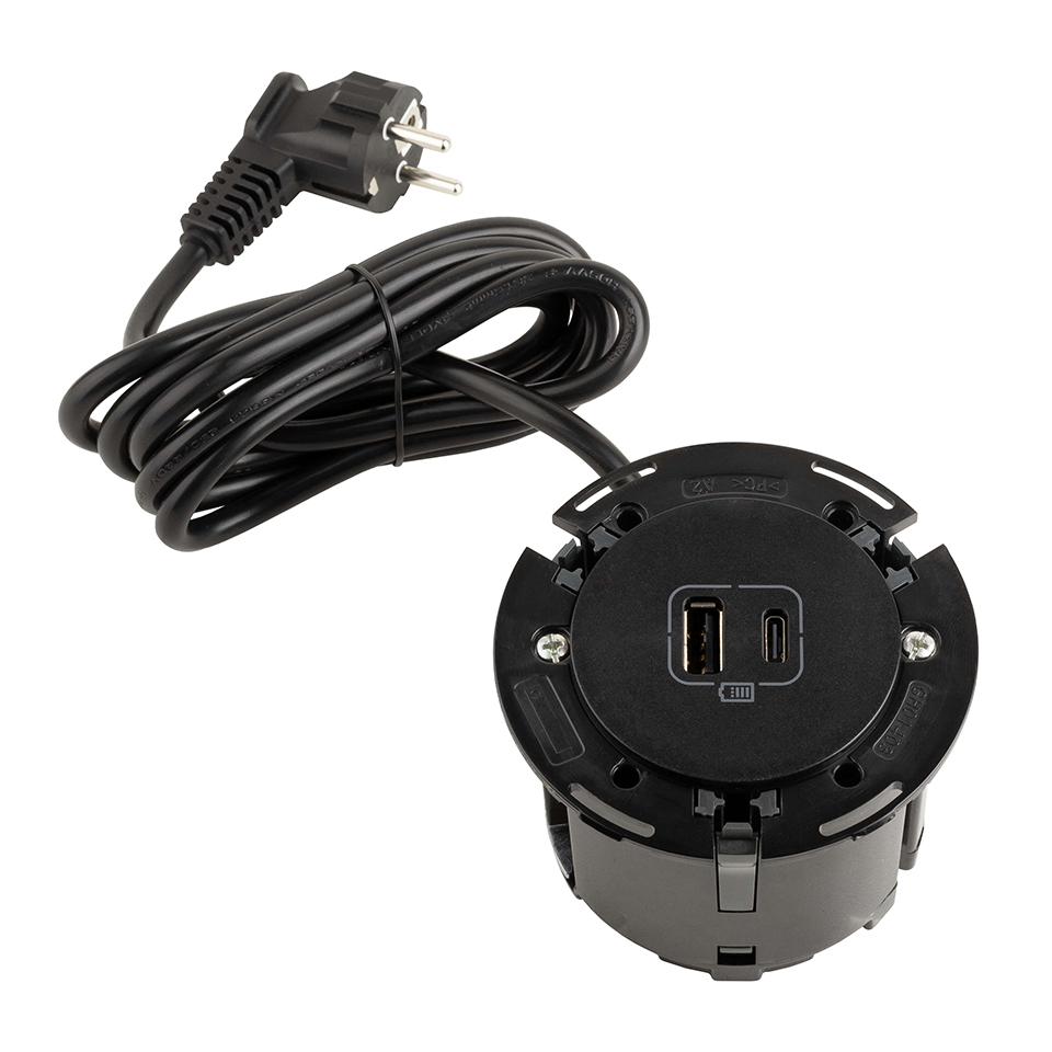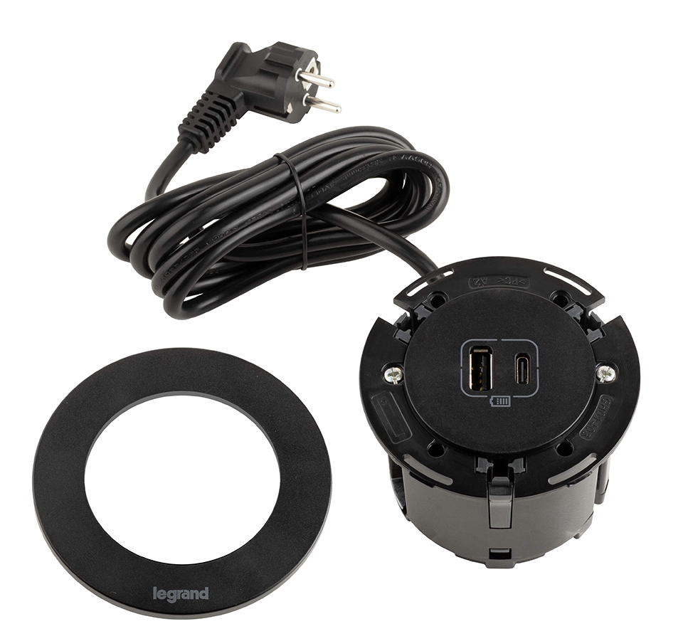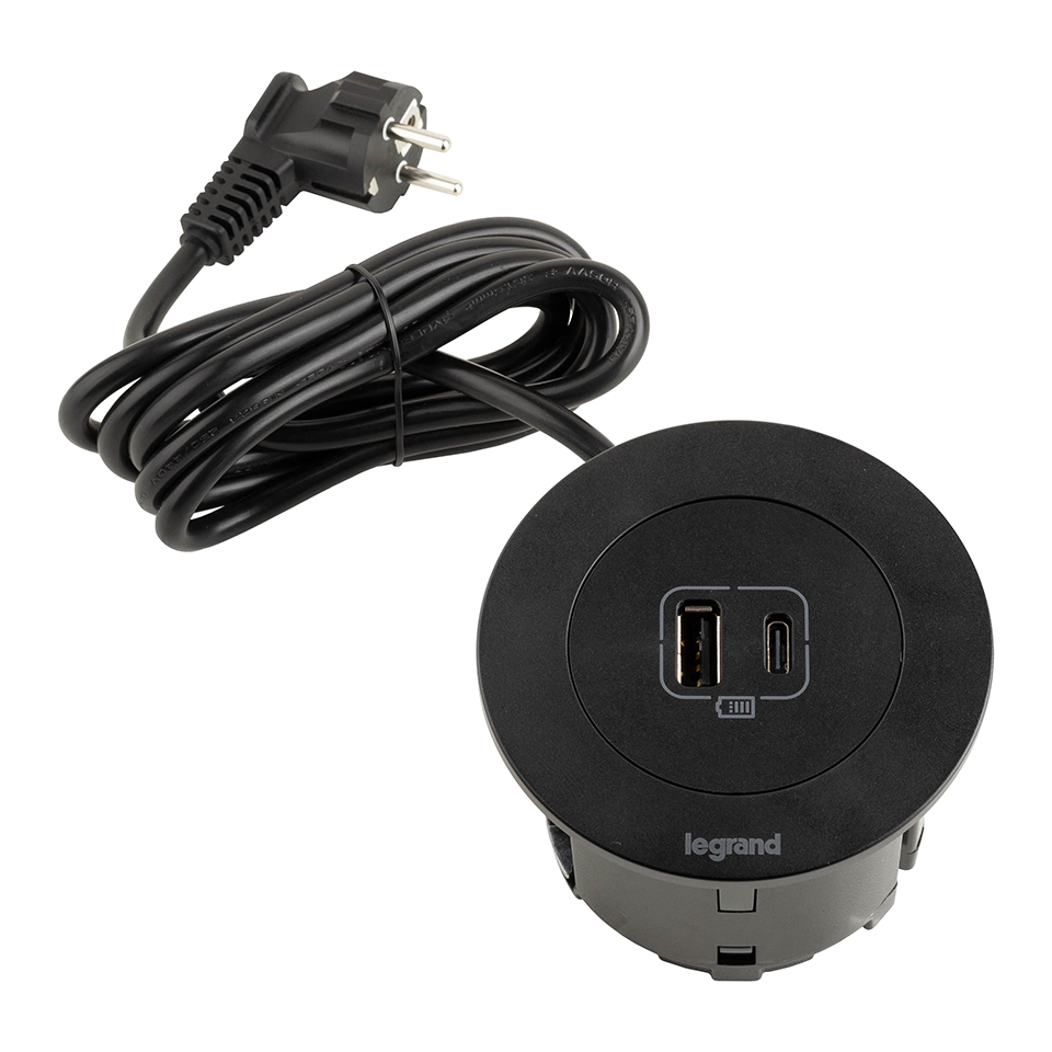 LEGRAND prise électrique Disq60 1x USB A+C chargeur + câble 2m, noir