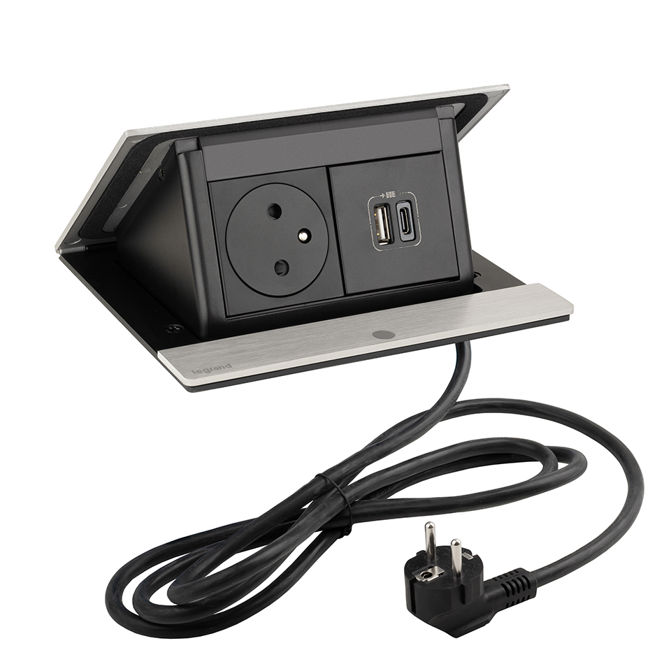 LEGRAND prise électrique PopUp, 1x 230V FR, 1x USB A+C, alu brossé