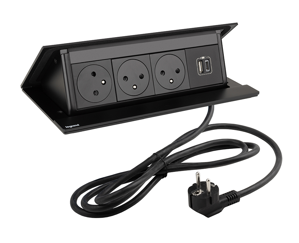 LEGRAND prise électrique PopUp, 3x 230V Fr, 1x USB A+C, noir mat