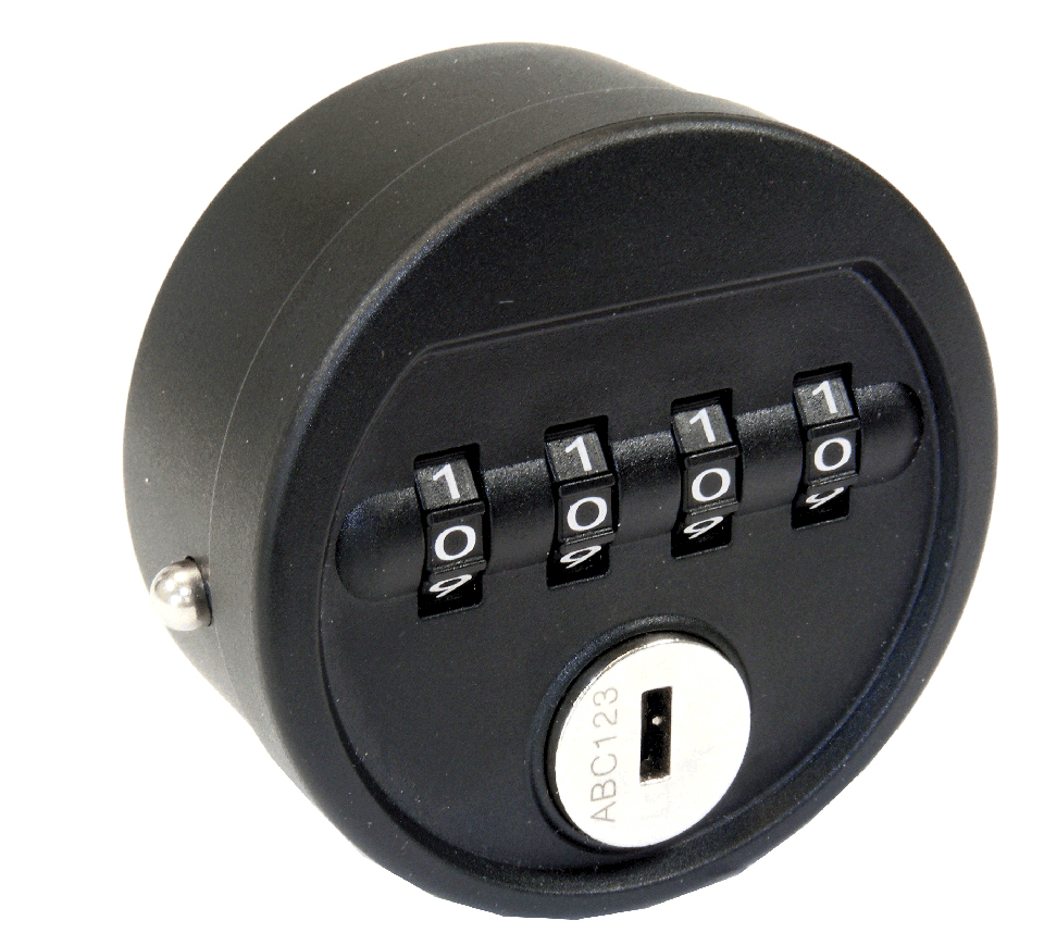 Serrure a combinaison ronde type 60, droitier/gaucher, noire, sans pene, pour matériau ép. 0,8-12 mm, perçage 16x19 mm, pour clé d’urgence type Z0001