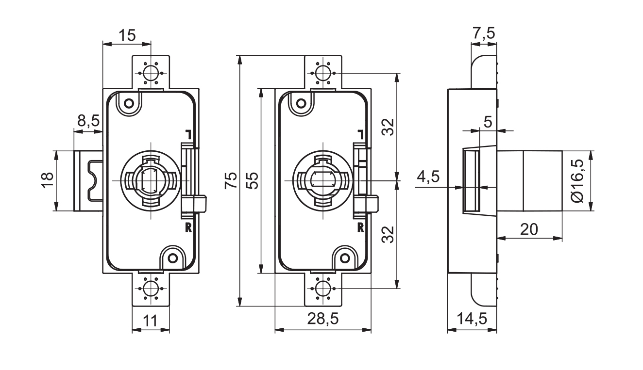 LEHMANN Serrure trois voies 750 droite/gauche noire