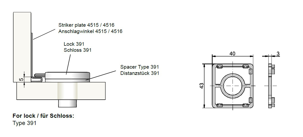 LEHMANN sous-couche pour encastrement de serrure dans des façades fines de tiroirs