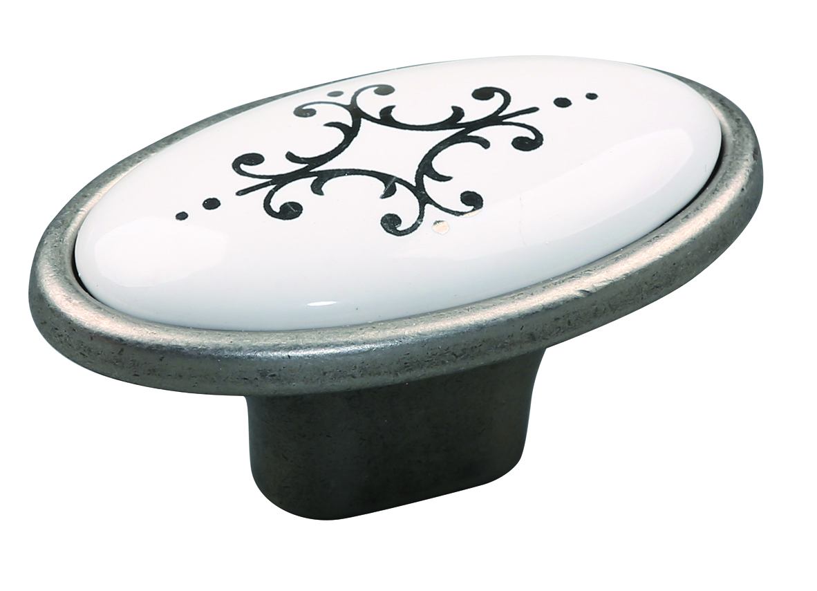 bouton ovale - argent vieilli/porcelaine blanche/motif, longueur 58 mm, largeur 32 mm, hauteur 30 mm.