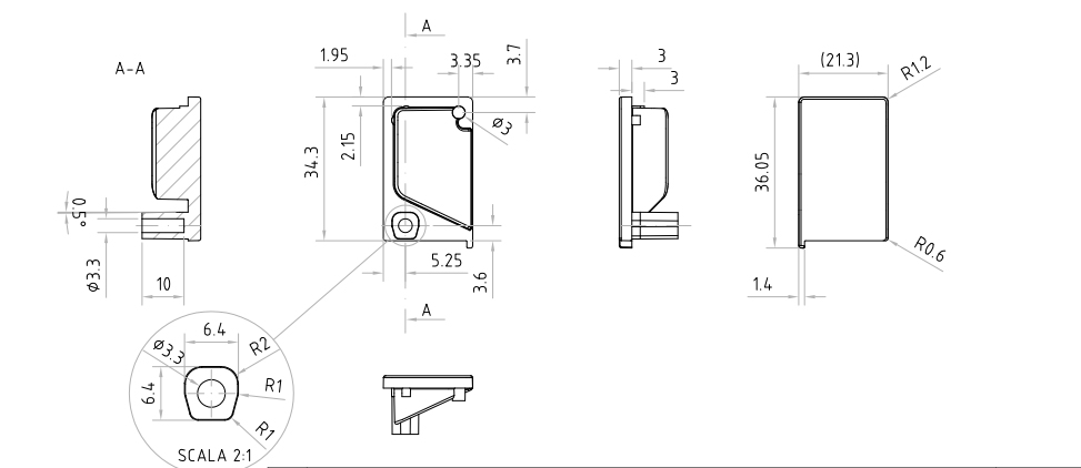 L'embout pour le profil Marella Florida est destiné a la finition de la version raccourcie du profil selon la largeur nécessaire des portes. Il s'agit d'un type d'embout fermé qui reprend la forme du profil Florida. Il est conseillé de coller l'embout au point de contact avec le profil a l'aide d'une colle cyanoacrylate ou époxy bi-composant.