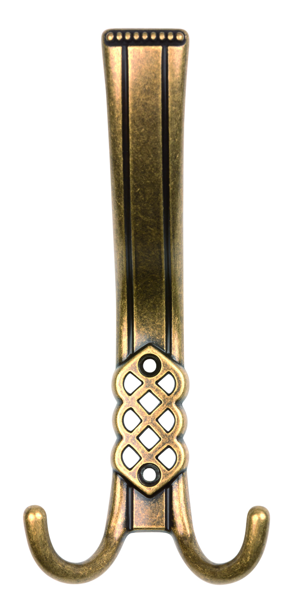 Porte-manteau largeur 80 mm, profondeur 59 mm, hauteur 175 mm, surface laiton ancien.