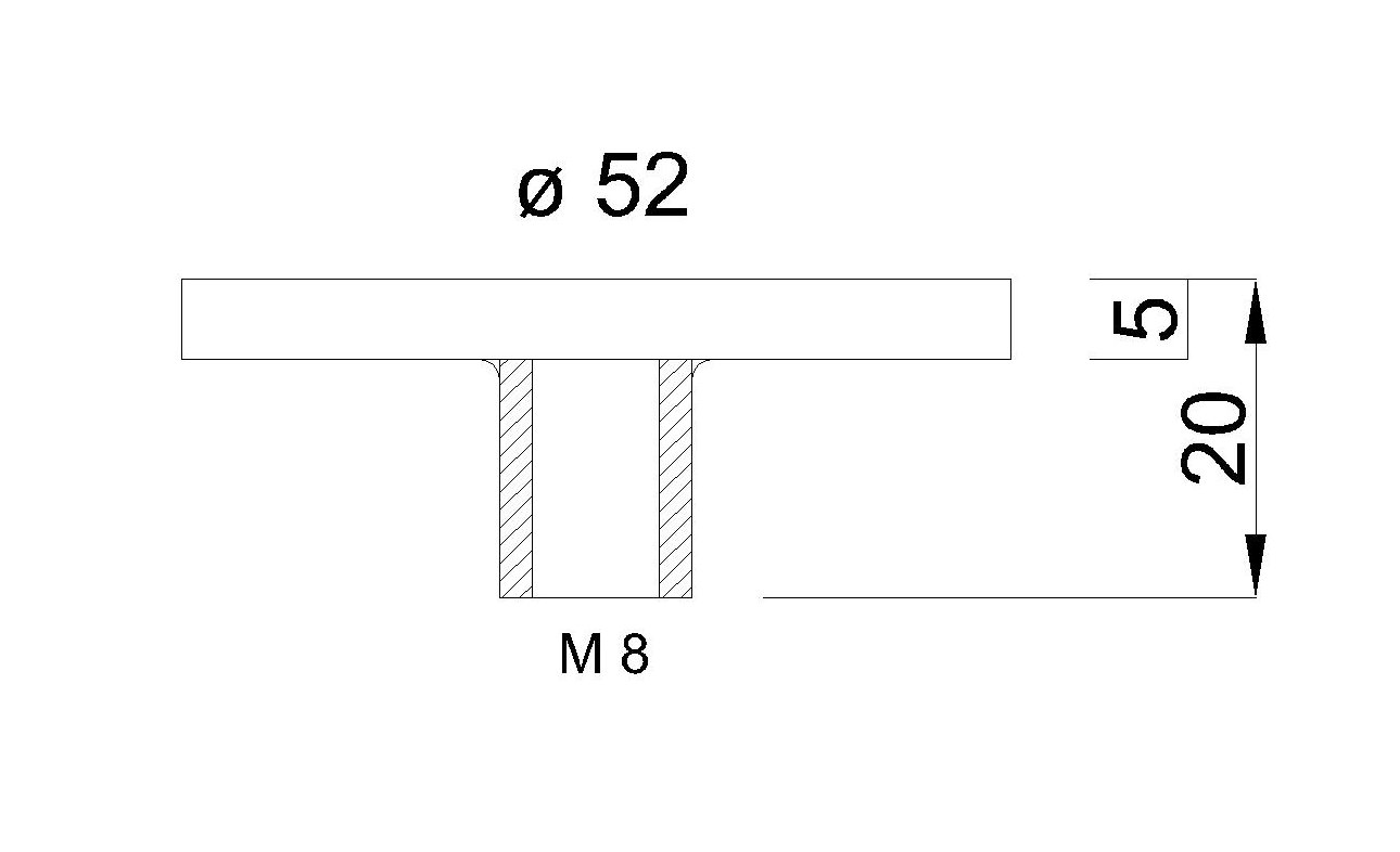 La fixation possede un filetage interne M8 sur la face inférieure et se colle sur le verre sur la face supérieure a l'aide d'une colle spéciale (généralement durcie par UV)