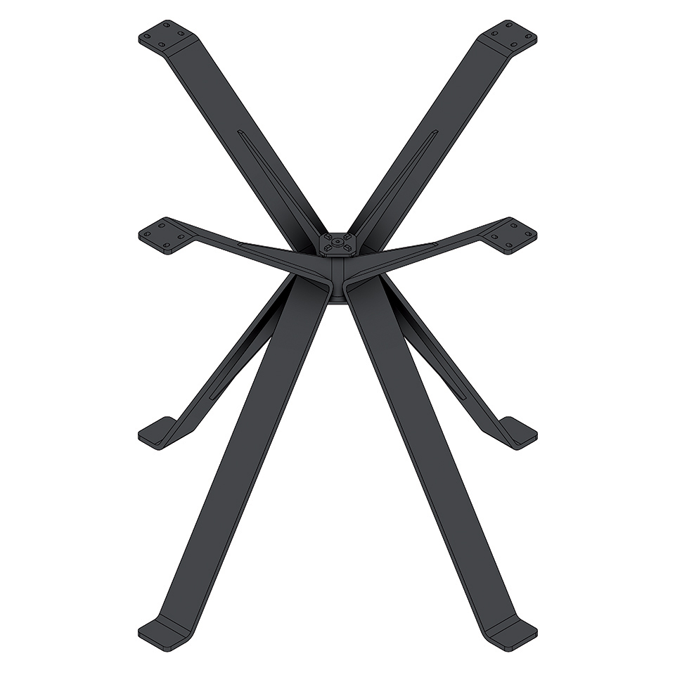 Pied de table central biseauté a quatre bras EX 72080-4, noir RAL 9005, dimensions 722 x 722 x hauteur 720 mm