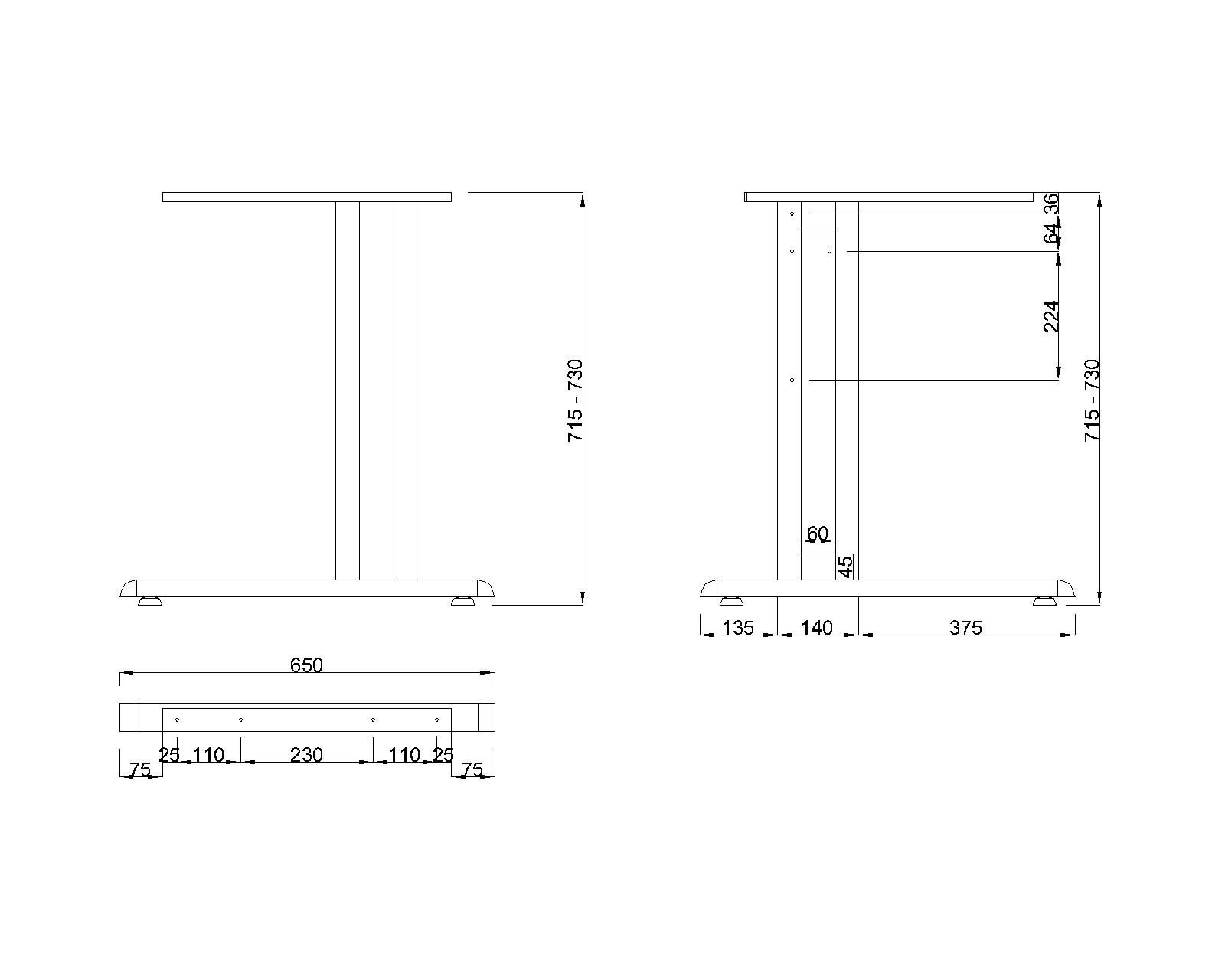 Piétement de table d'extrémité (profil de base inférieure 50x30 mm), remplissages latéraux inclus