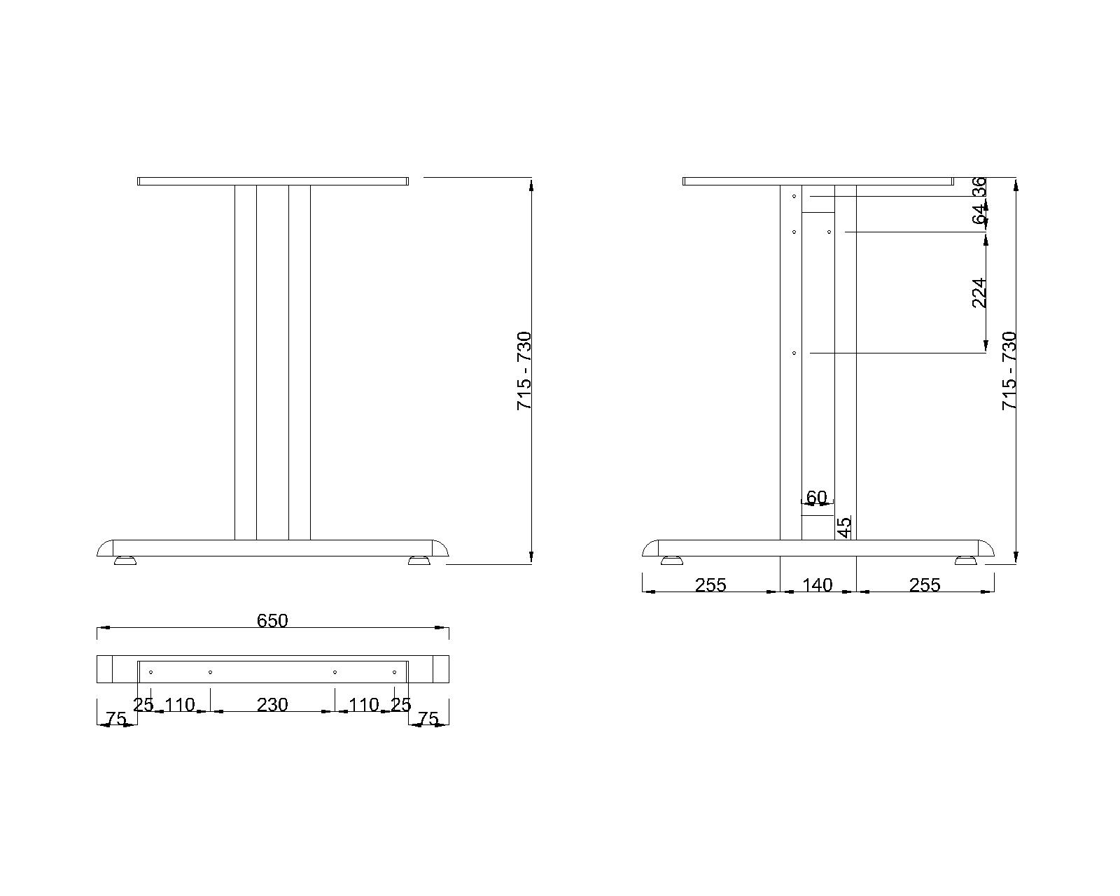 Dimensions : 650x715–730H pour épaisseur maximale de plateau de table 25 mm