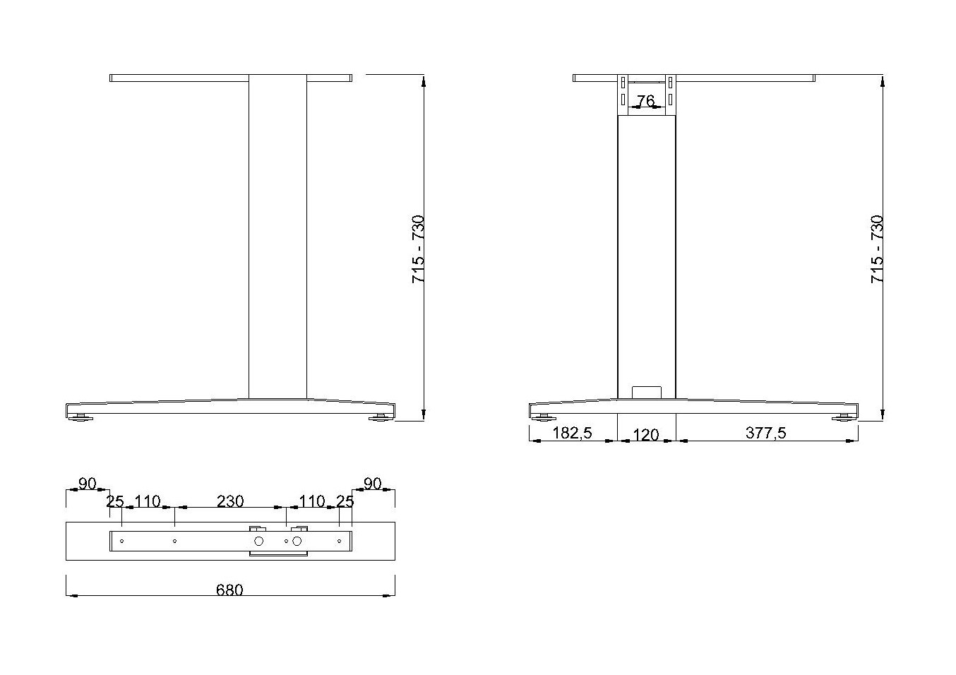 Piétement de table d'extrémité (base avec extrémités biseautées de largeur 80 mm), remplissages latéraux inclus