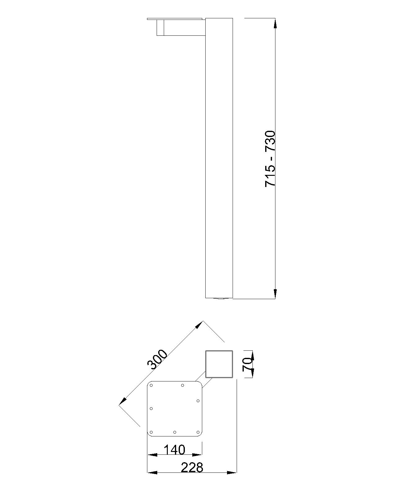 platine de fixation 140x140 mm, la platine permet la fixation du pied sur le coin de la table