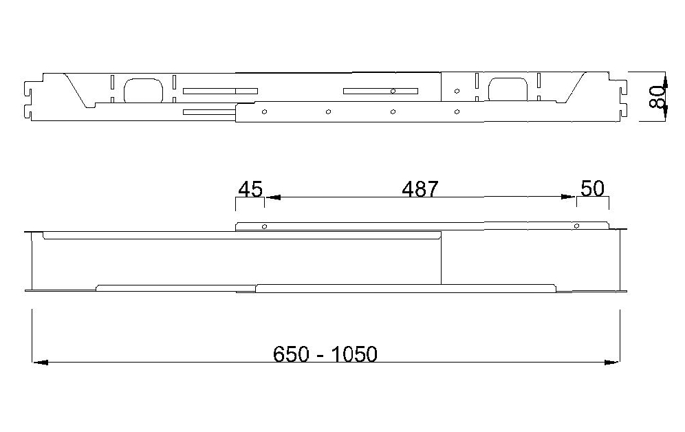 Dimensions : 650–1050x103x80H