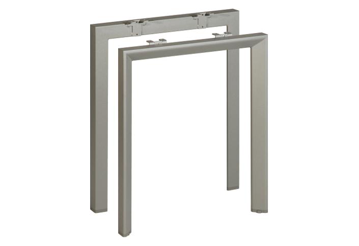 Produit intelligent : design moderne, simple, allégé. La gamme de piétements Mobi-Q est proposée en plusieurs coloris ainsi qu’en différentes formes (profil carré ou triangulaire), piétement ouvert ou fermé (O ou U). La traverse est soit fixe, soit télescopique, s’adaptant ainsi de maniere flexible aux exigences du client.
