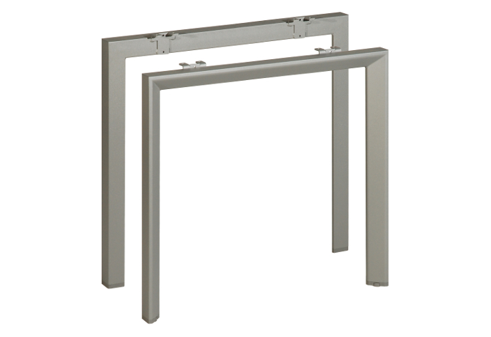Produit intelligent : design moderne, simple, allégé. La gamme de piétements Mobi-Q est disponible en plusieurs coloris, mais aussi en formes (section carrée ou triangulaire), piétement ouvert ou fermé (O ou U). La barre transversale est soit fixe, soit télescopique, s'adaptant de maniere flexible aux exigences du client.