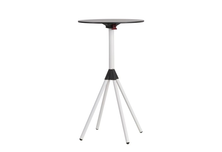 Pied de table central PL 6014 IN, pied en inox, colonne avec peinture poudre, blanc RAL 9016, base 600 x 600 mm, hauteur 1060 mm, pour plateau max O 700 mm, le pied permet l'inclinaison du plateau et l'empilage des tables