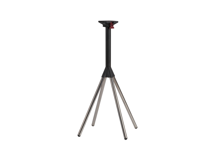 Pied de table central PL 6014 IN, pied en inox, colonne avec peinture poudre, noir RAL 9005, base 600 x 600 mm, hauteur 1060 mm, pour plateau max O 700 mm, le pied permet l’inclinaison du plateau et l’empilage des tables