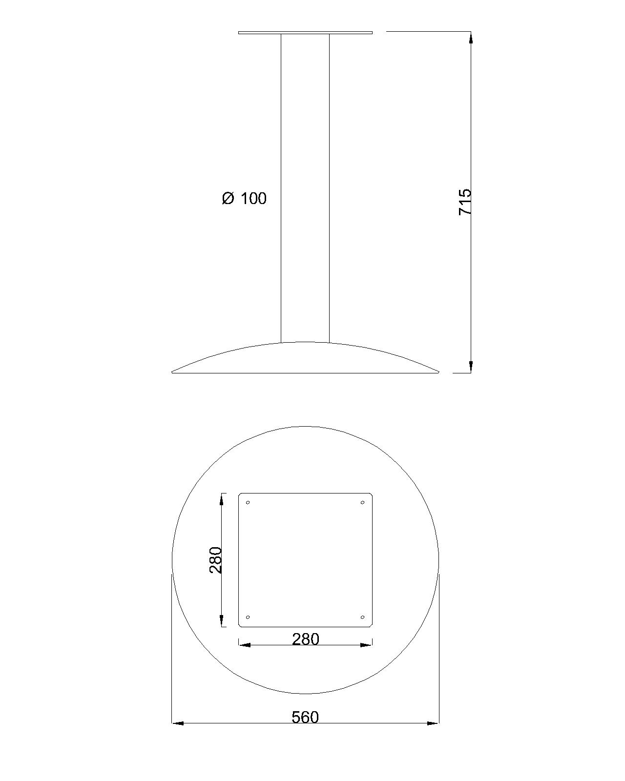 Piétement central circulaire (profil de pied diametre 100 mm)