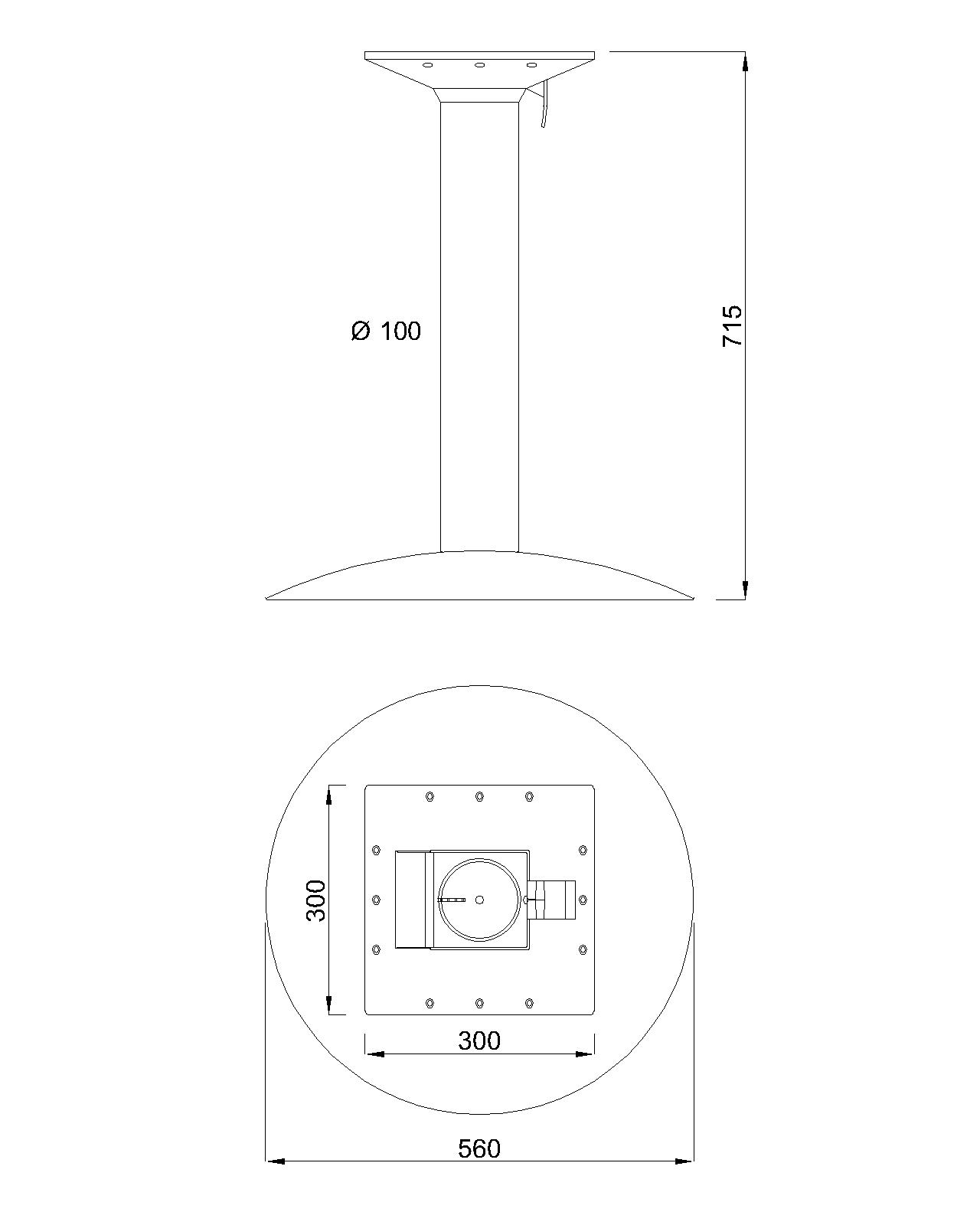 Piétement central circulaire rabattable (profil du pied diametre 100 mm)