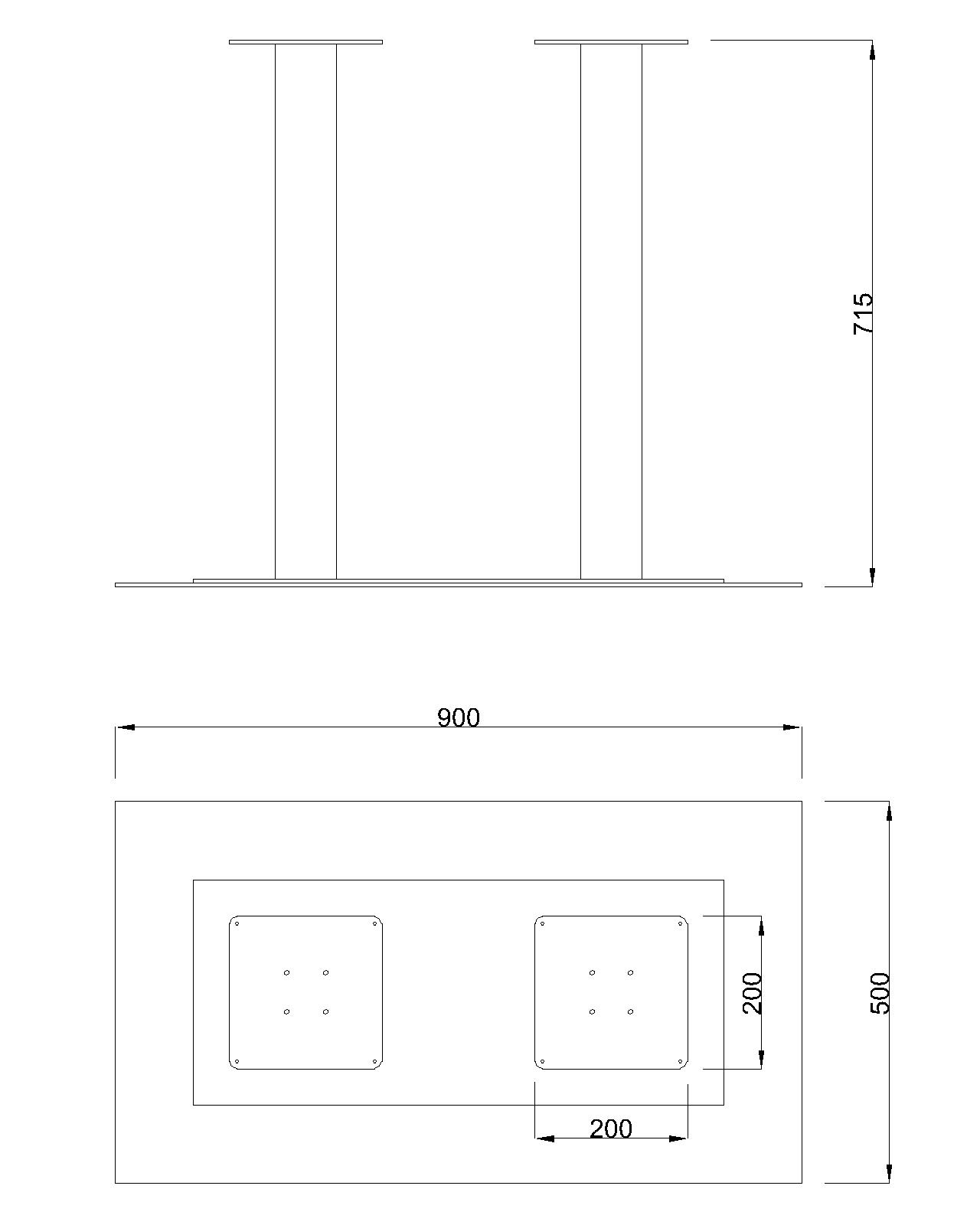 Piétement central rectangulaire (profil du pied 70x70 mm)