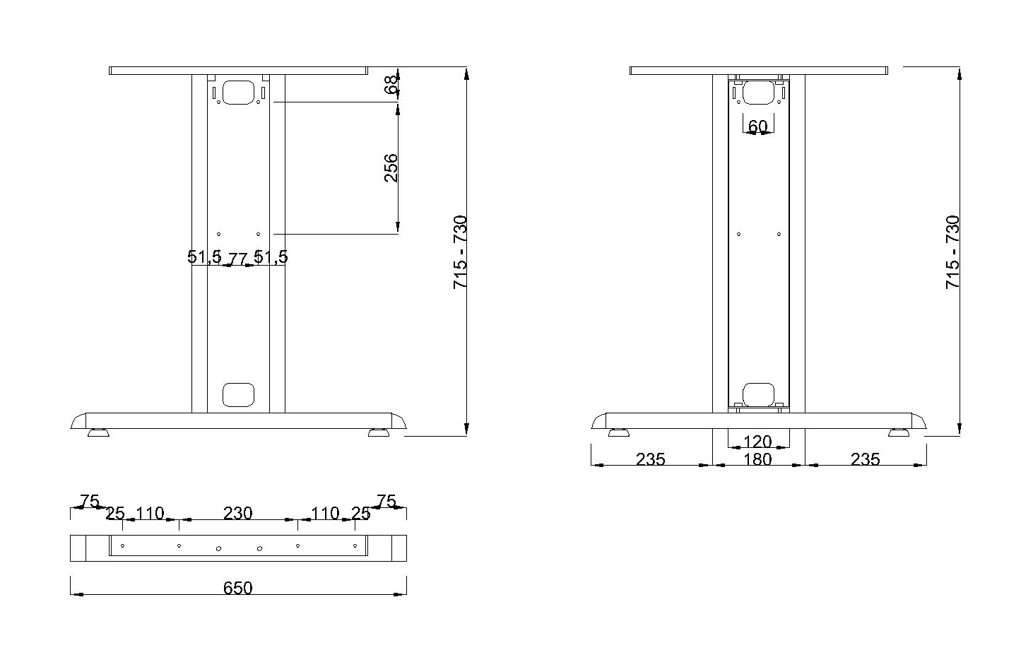 Dimensions : 650x715–730H