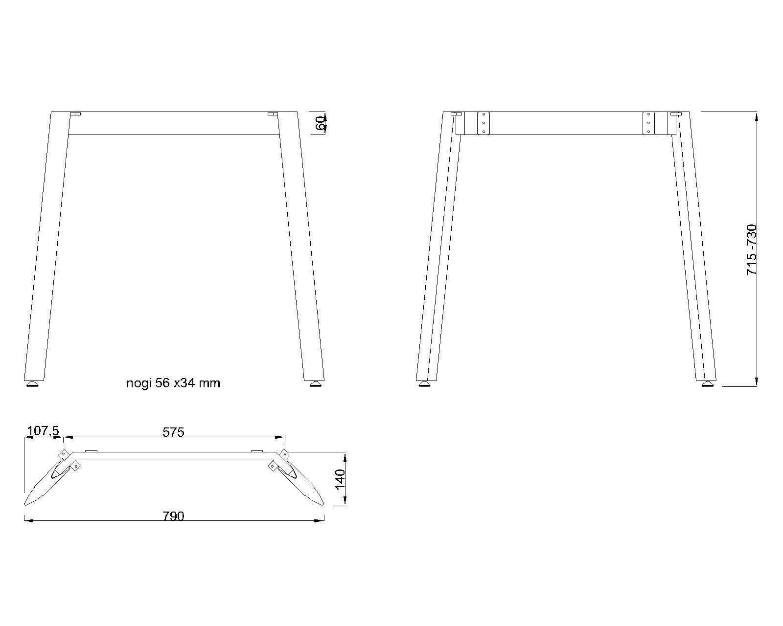 Piétement de table biseauté coudé (profil de pied triangulaire 56x34 mm)