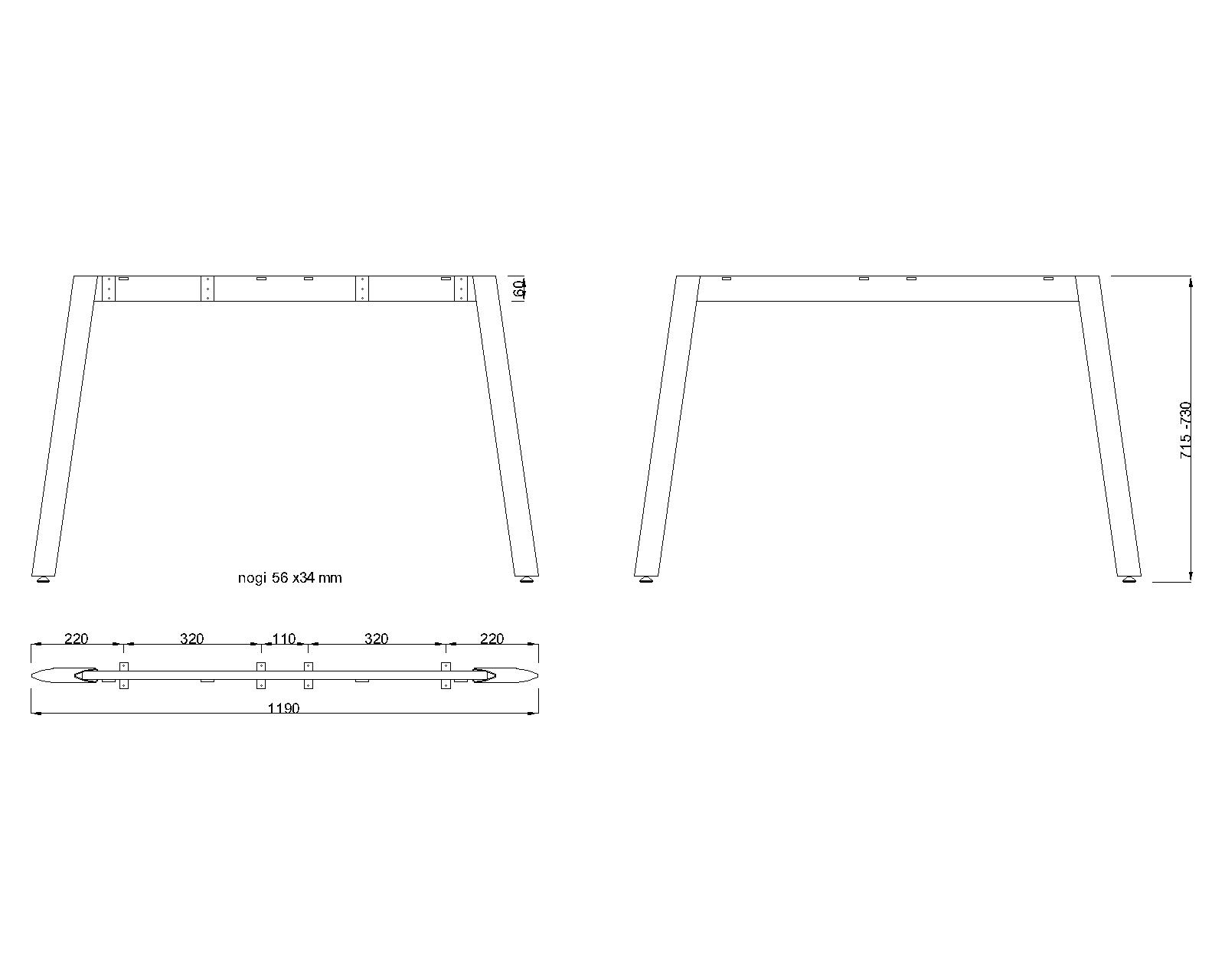Piétement de table double biseauté (profil de la jambe triangulaire 56x34 mm)