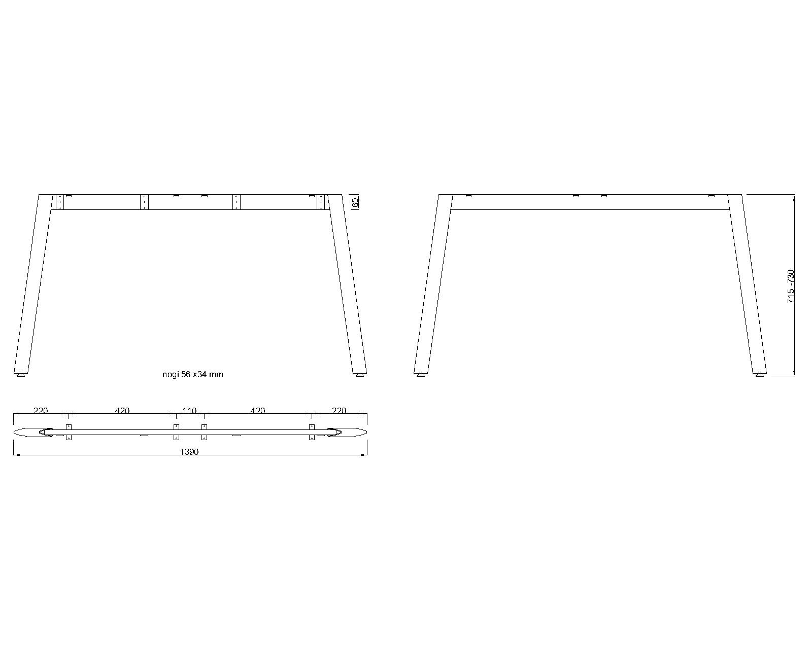 Piétement de table double biseauté (profil de la jambe triangulaire 56x34 mm)