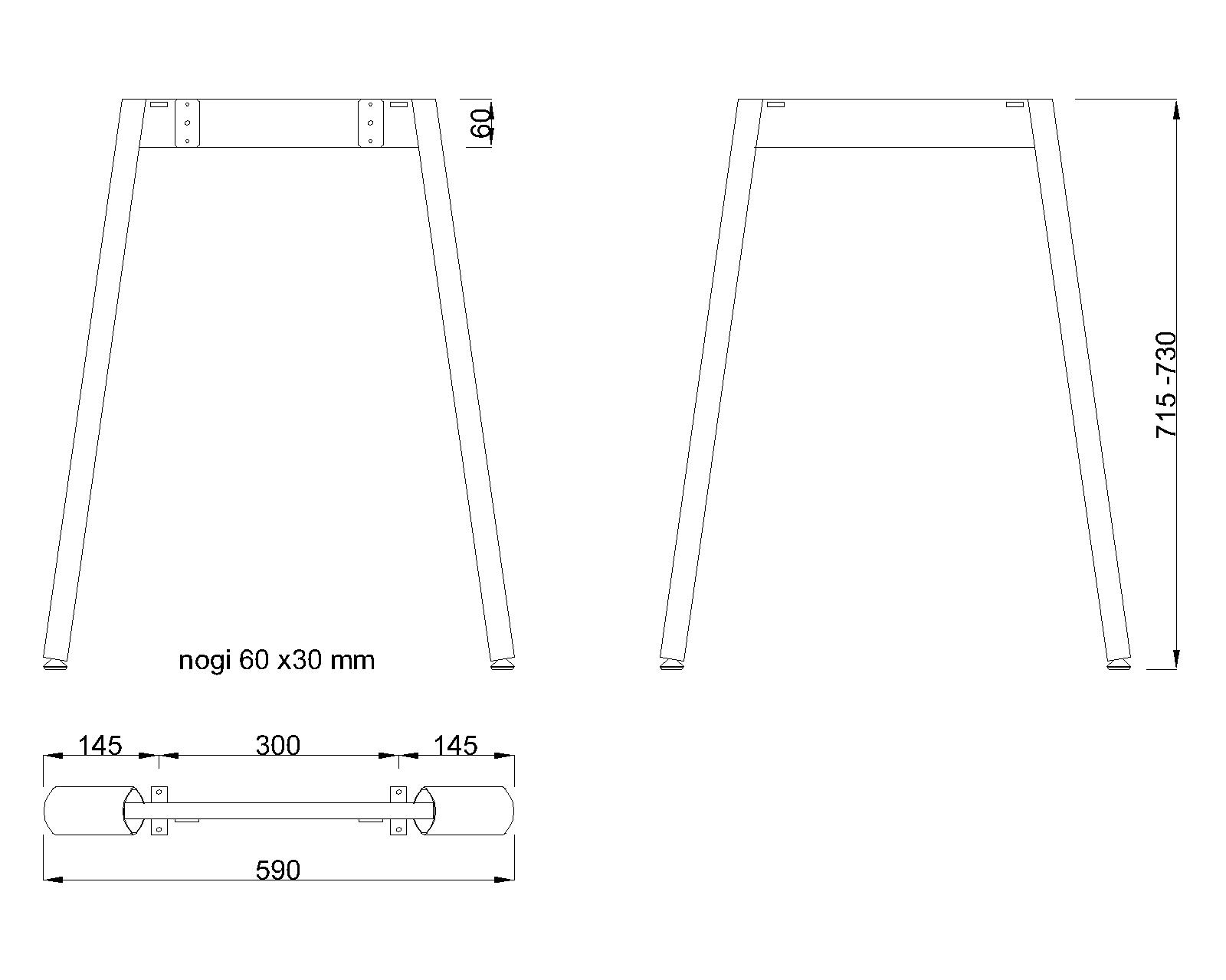 Piétement de table biseauté (profil de la jambe elliptique 60x30 mm)