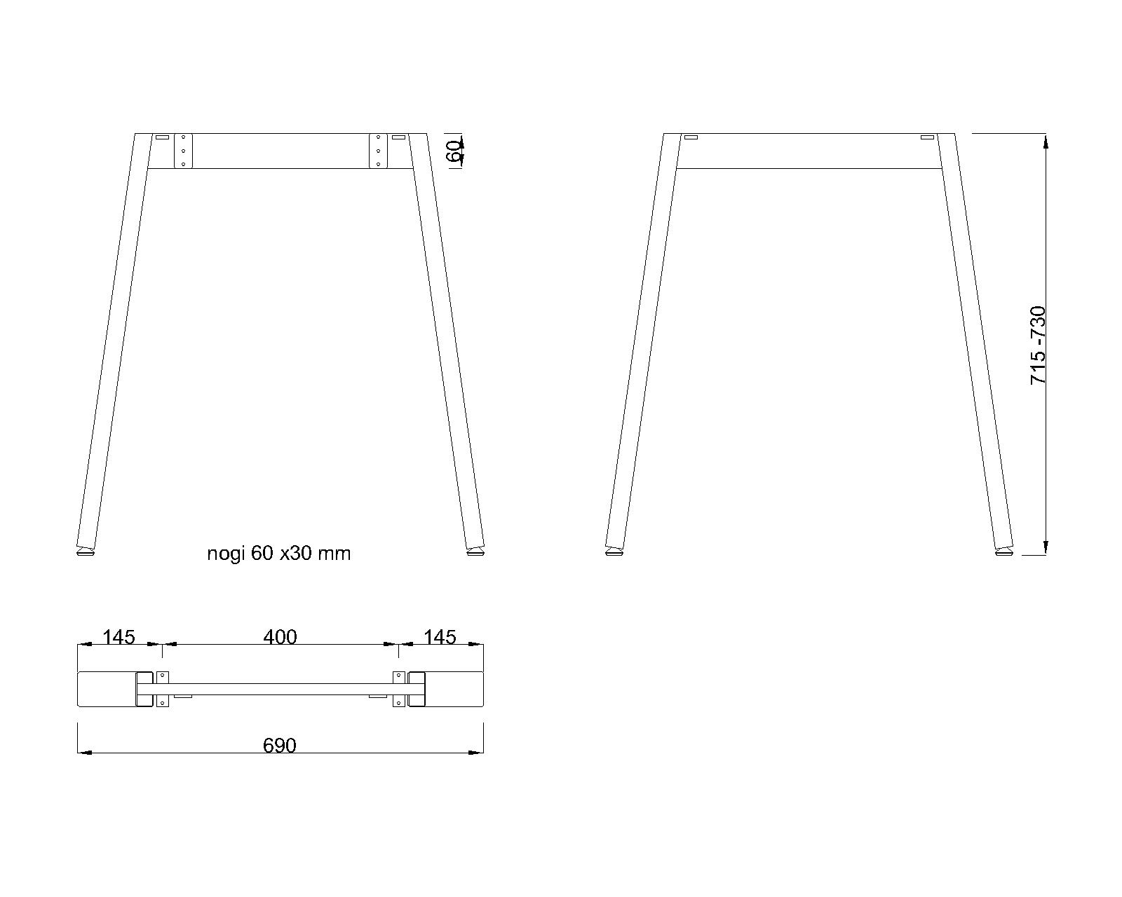 Piétement de table biseauté (profil de la jambe 60x30 mm)