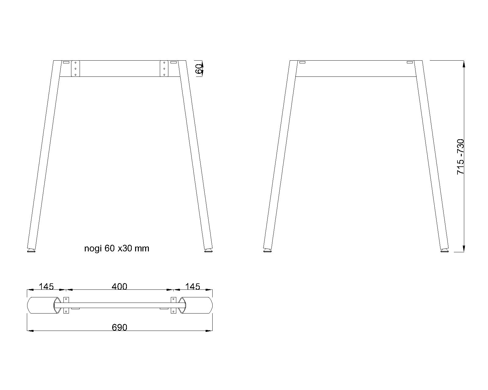 Piétement de table biseauté (profil de la jambe elliptique 60x30 mm)