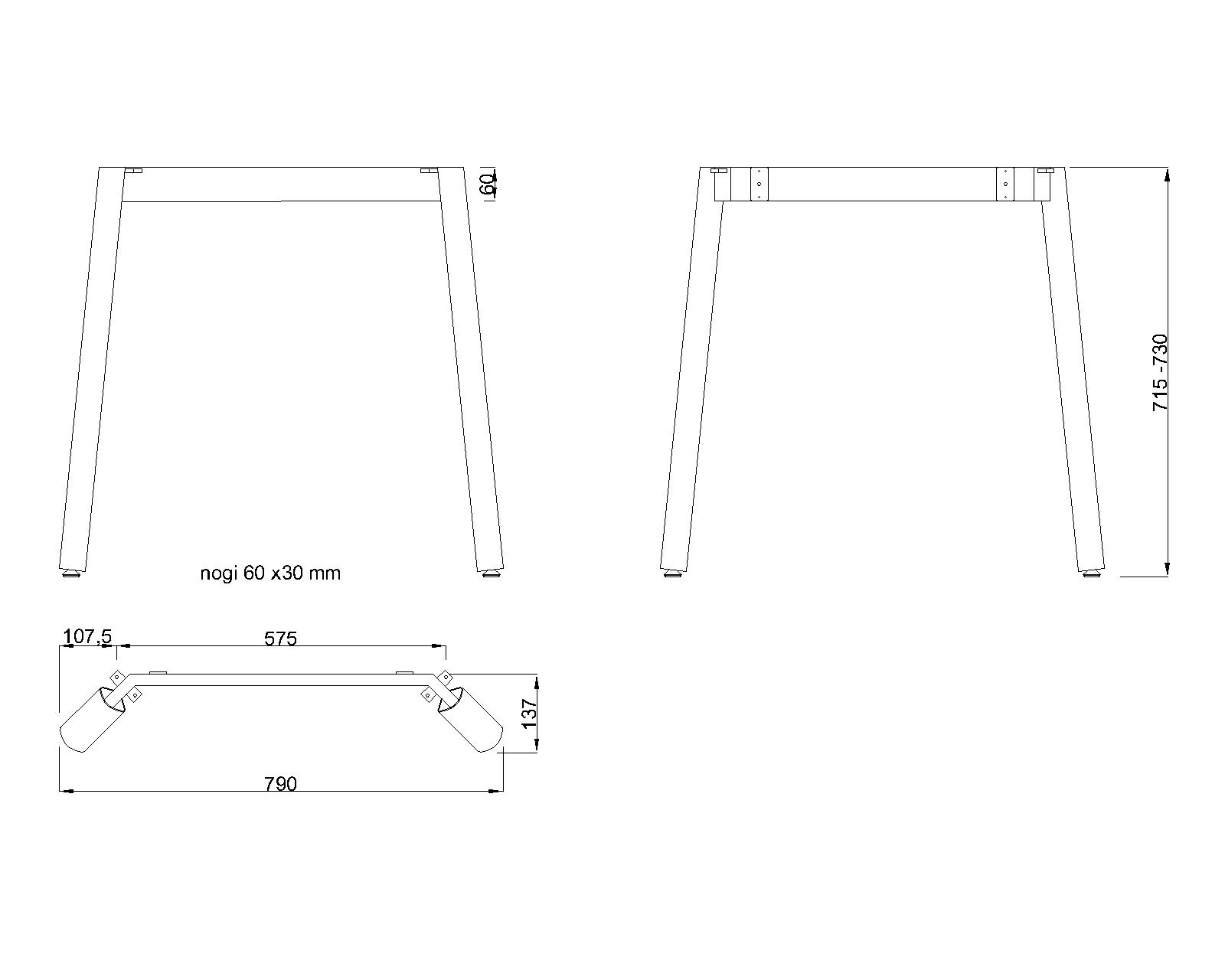 Piétement de table biseauté coudé (profil de la jambe elliptique 60x30 mm)