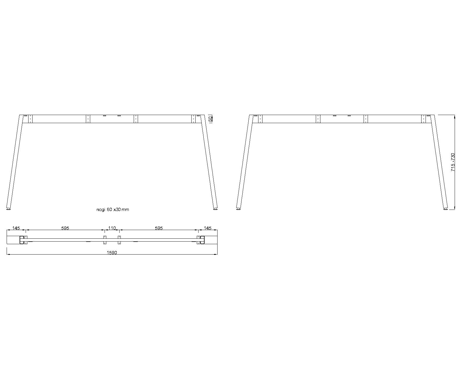 Piétement de table double biseauté (profil de la jambe 60x30 mm)