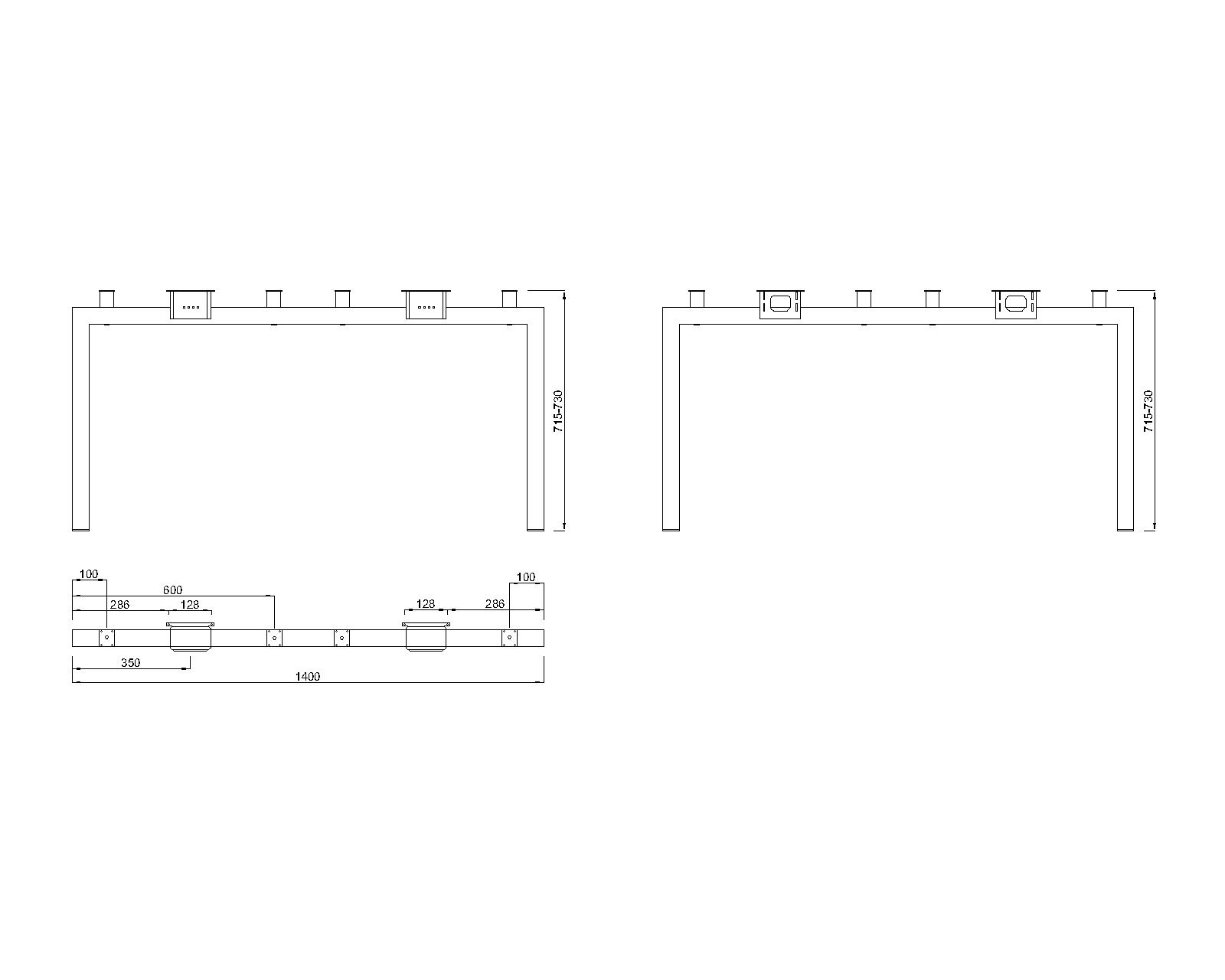 Piétement double (profil de la jambe 50x50 mm)