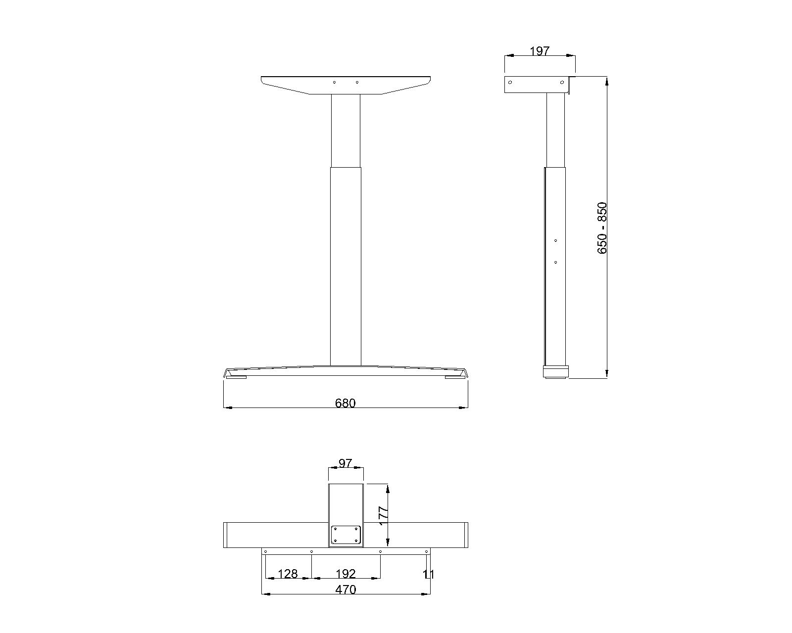 Piétement de table réglable en hauteur central (base avec extrémités chanfreinées de largeur 70 mm), remplissages latéraux inclus