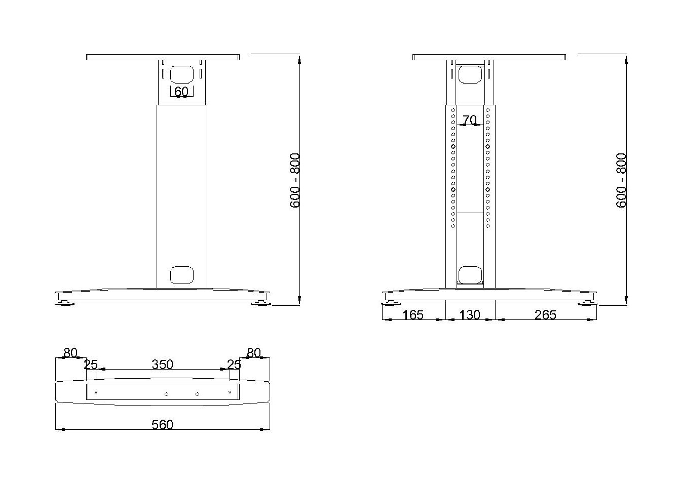 Piétement de table réglable en hauteur extrémité (base de largeur 75 mm)
