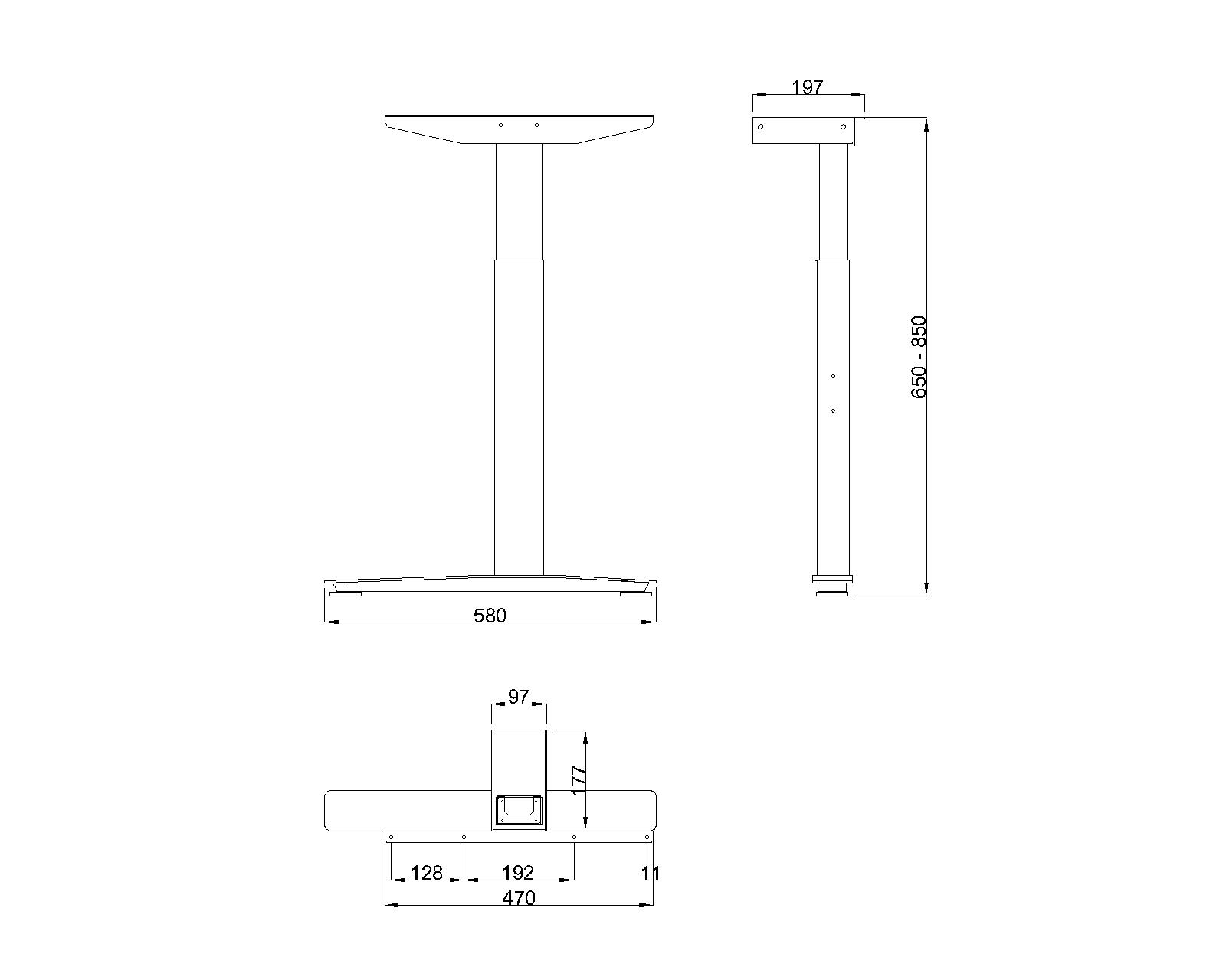 Piétement de table réglable en hauteur extreme (base de 70 mm de largeur), remplissages latéraux inclus