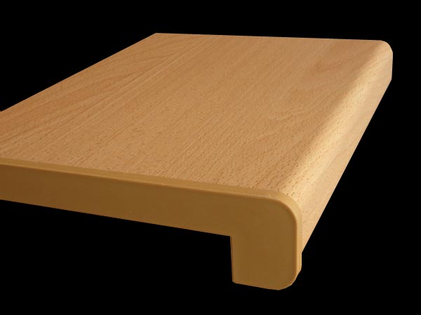 Parapet pro vnitřní použití. Rozměr délka x hloubka dle popisu. Tloušťka nosné desky (s) = 17mm, výška nosu (v) = 40mm, šříku nosu (t) = 25mm. Rádius zaoblení 10mm. Základem parapetní desky je kvalitní nosič, který se vyrábí z 16 mm vlhkuodolné DTD desky P3. Předností parapetu je, že základní nosná deska je silná 16 mm, ale nos parapetu je zesílen a vyrábí se z 25 mm DTD desky P5. Tento profil je již řadu let osvědčen a zlepšuje tvarovou stabilitu a tuhost celého výrobku. Povrch parapetní desky tvoří vysoce oděruvzdorný laminát CPL/HPL, který se používá běžně na pracovní desky a je dodáván předními výrobci laminátu v Evropě. Laminát je stálobarevný a odolný proti UV záření, běžným domácím chemikáliím, vařící vodě a vysokým teplotám.