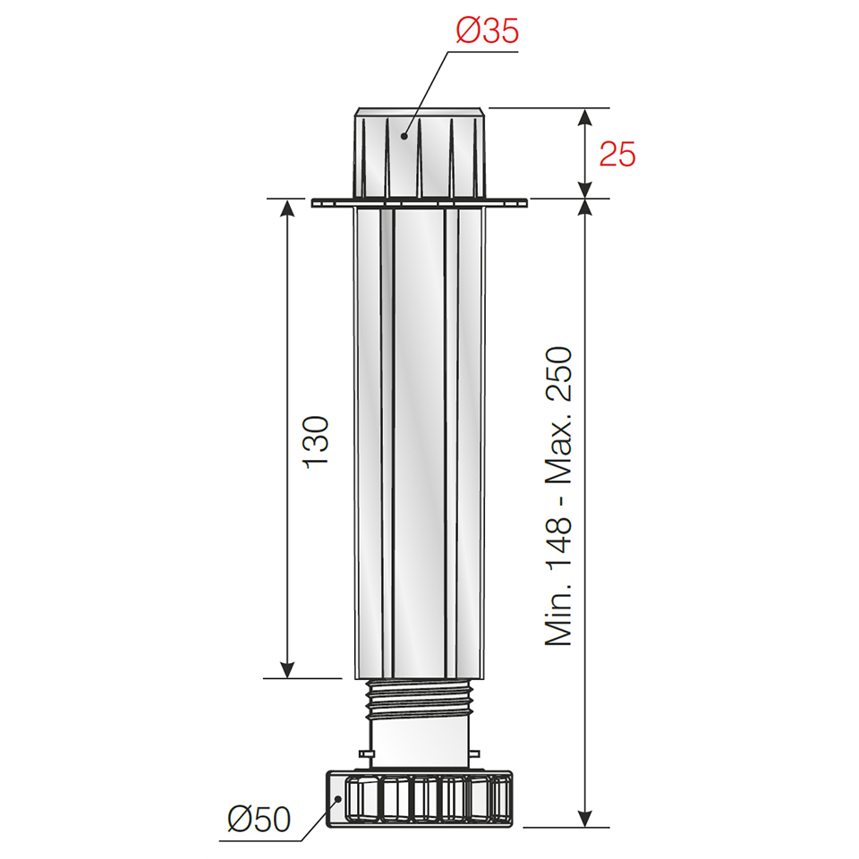 Se monte dans un trou de diametre 35 mm, profondeur 25 mm. En alternative, il est possible d'utiliser un adaptateur pour montage en surface, qui sert également de rallonge de 26 mm.
