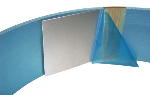 Épaisseur 0,45mm, la tôle de protection est munie d'un ruban adhésif, ce qui permet un collage facile. Elle est équipée d'un film de protection.