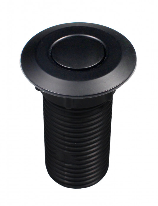 ECOMASTER SINGLE PNEUMATIC BUTTON ROUND. Used to control the kitchen waste shredder. Chrome plated durable plastic. Universal best-selling button with long life. Suitable for gastro operations. Placement. Possible clamping length 54 mm - i.e. possible countertop thickness. Function. It does not directly give an impulse, but by pressurising the compressed air through a hose, it switches the pneumatic-mechanics in the body of the shredder, which operates a membrane-separated electrical microswitch. The button and the shredder are thus only connected by an air hose. The hose is not included
