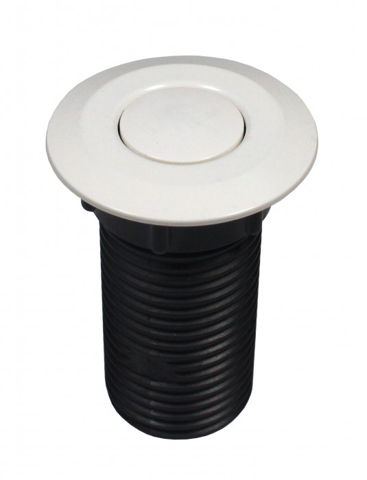 ECOMASTER SINGLE PNEUMATIC BUTTON ROUND. Used to control the kitchen waste shredder. Chrome plated durable plastic. Universal best-selling button with long life. Suitable for gastro operations. Placement. Possible clamping length 54 mm - i.e. possible countertop thickness. Function. It does not directly give an impulse, but by pressurising the compressed air through a hose, it switches the pneumatic-mechanics in the body of the shredder, which operates a membrane-separated electrical microswitch. The button and the shredder are thus only connected by an air hose. The hose is not included