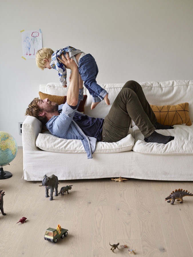 Dlouhé, široké lamely a výrazné podélné maxifáze umocňují atmosféru masivní dřevěné podlahy. A k tomu saténově lakovaná, nebo kartáčovaná a matně lakovaná dotváří přírodní, luxusní vzhled olejované podlahy. Vzhledem k tloušťce lamely a integrované korkové podložce slyšíte pouze tlumený zvuk Vašeho kroku . Tento pocit a zvuk se dají srovnat s klasickou, celoplošně lepenou dřevěnou podlahou. Jedenáct trendově mořených dubů ve vybraném třídění PREMIUM s rustikálním tříděním RUSTIC, americký ořech a exotická afrormosia - to je kolekce PARKY Deluxe+ 06. .
