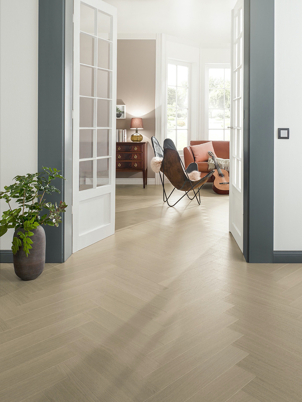 Kolekce Parky Swing 06 se zámkovým systémem na čelním spoji Unifit X®, vhodná pro pokládku do rybiny v menších prostorech. Tento nádherný typ pokládky podlahy tu je již léta, ale právě teď je oblíbenější, než kdykoli jindy. Nenechte se zmýlit, tento trend nikdy nezmizí. Tento typ pokládky dodává Vašemu interiéru jedinečný styl, ať už v tradičním domě, městském bytě nebo v ultramoderním interiéru.